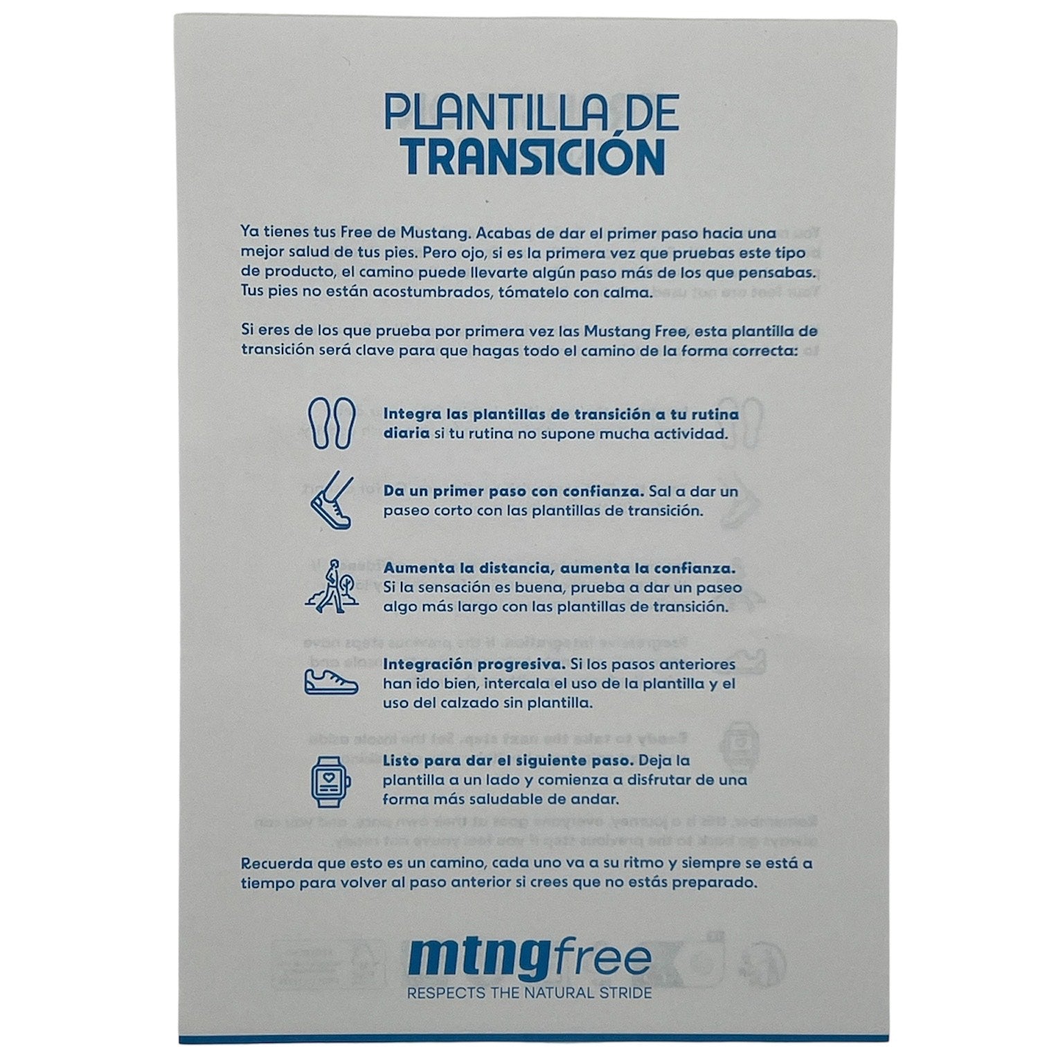 El MUSTANG C4029 presenta un disseny barefoot amb una sola àmplia i flexible que afavoreix el moviment natural del peu. Incorpora una plantilla d'iniciació que proporciona un suport suau ideal per als qui comencen en el calçat minimalista, facilitant l'adaptació sense comprometre la salut ni la mobilitat del peu. Perfecte per a usuaris que busquen una experiència natural amb estabilitat i confort avançats.